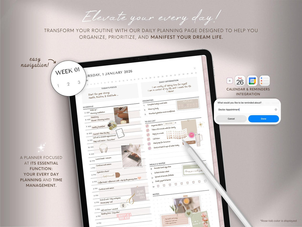 Navigation is effortless thanks to fully hyperlinked pages. You can instantly tap to jump between yearly, quarterly, monthly, weekly, and daily views. It eliminates endless scrolling, giving you quick access to the specific plans and goals you need to focus on.