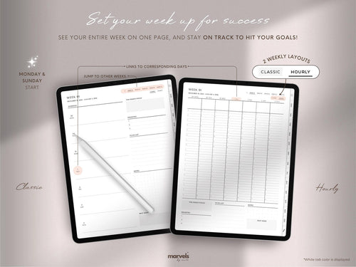 Move seamlessly between dates and views with fully hyperlinked pages for smooth digital planning.